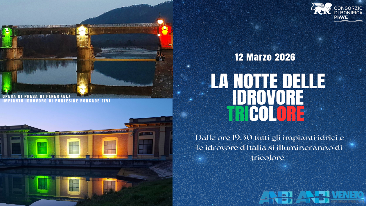 Anche il Consorzio di bonifica Piave parteciperà all’iniziativa “La Notte delle Idrovore Tricolore”, lanciata in tutta Italia da ANBI.