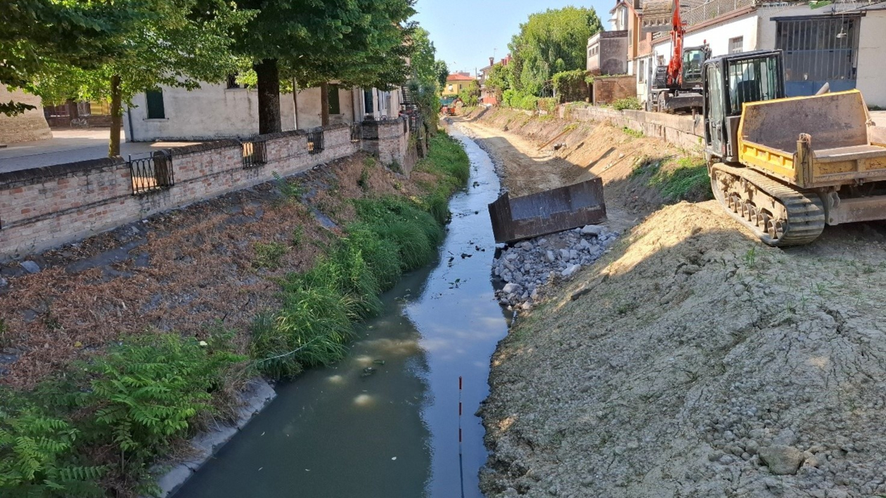 In questi giorni sono in corso degli interventi di riqualificazione ambientale lungo un tratto del canale demaniale Colatore Meolo nel centro urbano di Meolo.